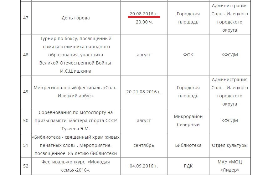 Была ли это опечатка или праздник действительно решили перенести неизвестно. Напомним, что ранее на сайте администрации округа была размещена информация, что День города в Соль-Илецке пройдет 26 июля, во вторник.