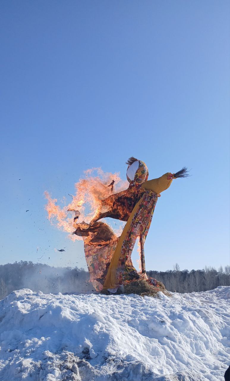 И, конечно, какой же праздник без блинов. Кульминацией стало традиционное сжигание чучела - символ прощания с зимой.